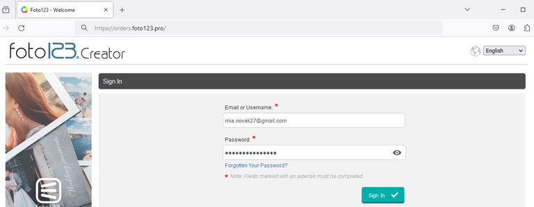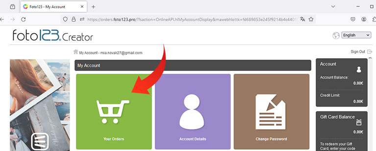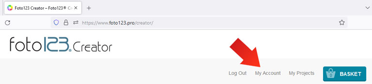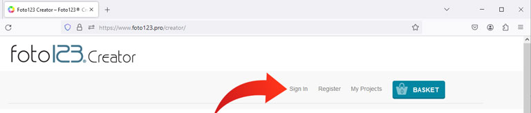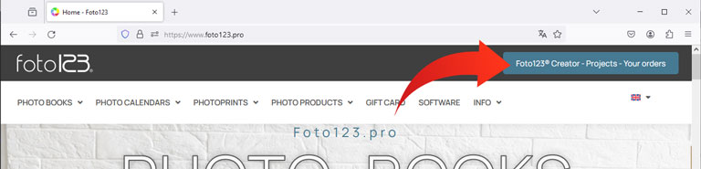 - In a web browser, open our website www.foto123.pro and click on the top right button “Foto123® Creator – Projects – Your orders”